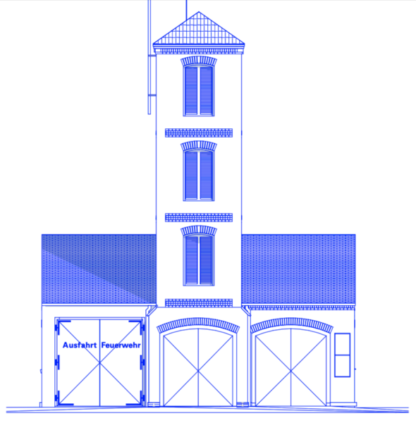 Gegenstand des Projekts sind Planungsleistungen zur Modernisierung und baulichen Ertüchtigung des denkmalgeschützten Feuerwehrgerätehauses, das um 1900 errichtet wurde. Es handelt sich um einen eingeschossigen Bau mit integriertem, markantem Schlauchturm. Das Gebäude wurde in traditioneller Ziegelbauweise errichtet und verfügt über eine unverputzte Backsteinfassade. Der linke Gebäudeteil wurde baulich deutlich überformt, um den Anforderungen des modernen Feuerwehrbetriebs und den größeren Einsatzfahrzeugen zu entsprechen.