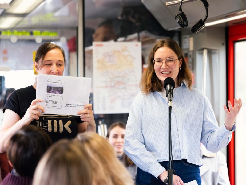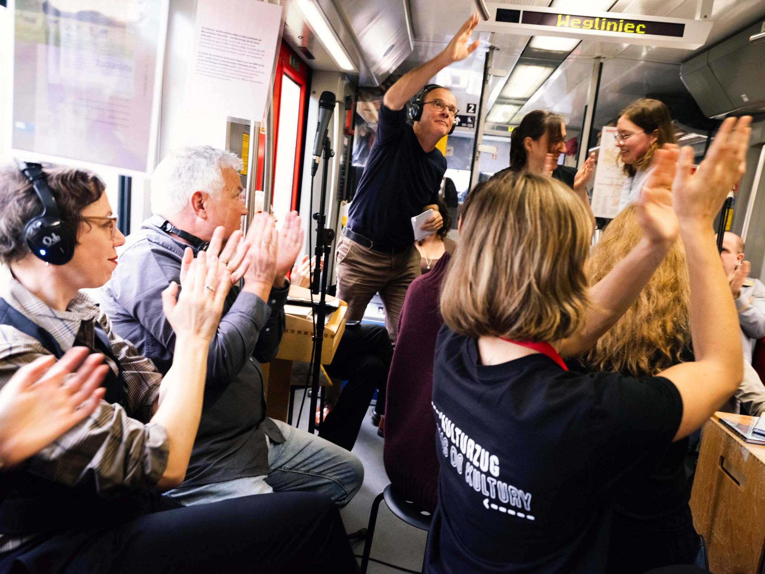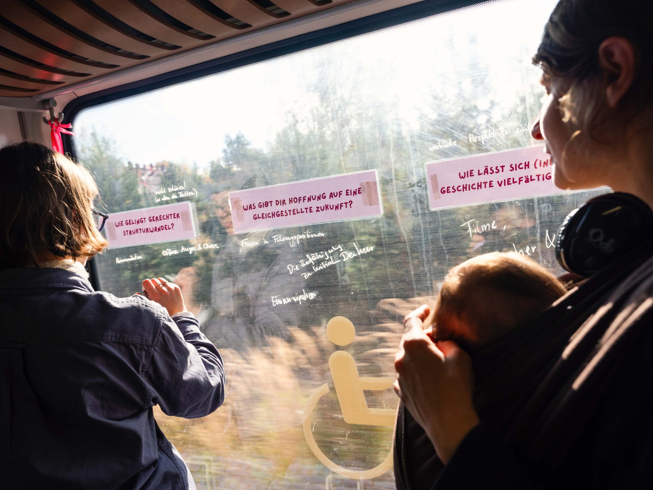 Im Mittelpunkt standen die Veränderungsprozesse der Lausitz und die Frage, wie Kultur und Baukultur den Strukturwandel begleiten und gestalten. An Bord des Zuges fanden Science Slams, Ausstellungen und Gesprächsrunden statt. Die Fahrgäst:innen konnten unter anderem über den Wandel von Städten und Landschaften im Zuge des Kohleausstiegs und die Rolle von Frauen im Transformationsprozess der Lausitz erfahren.